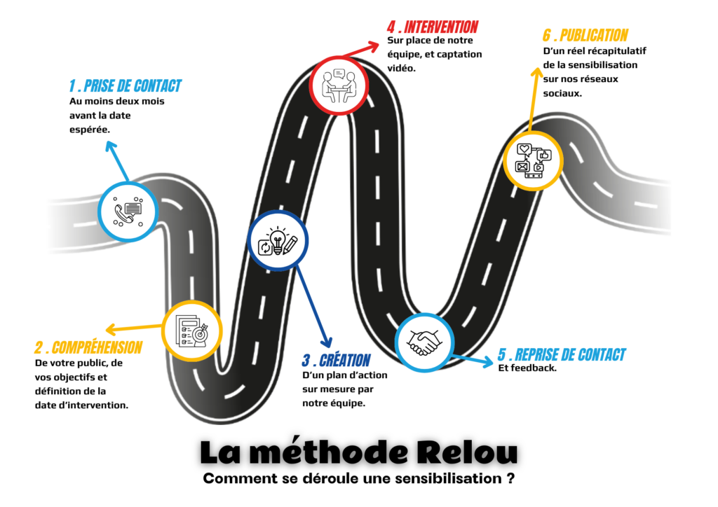 📞 06.76.71.88.28La Team Relou Prévention serait ravie de sensibiliser davantage de jeunes et de collaborer avec votre structure.